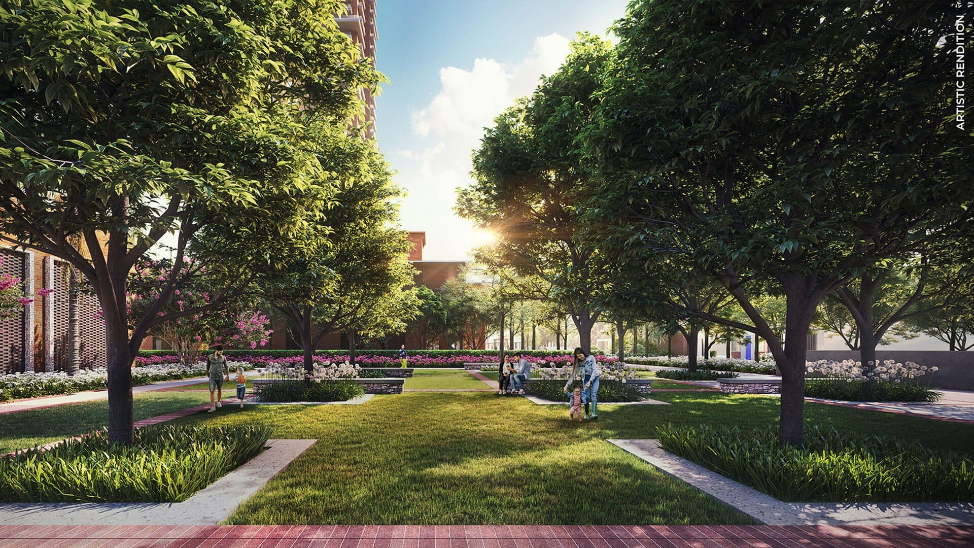 Luxury homes with open plans, balconies, and premium features. Includes gardens, leisure paths, pools, and family zones.